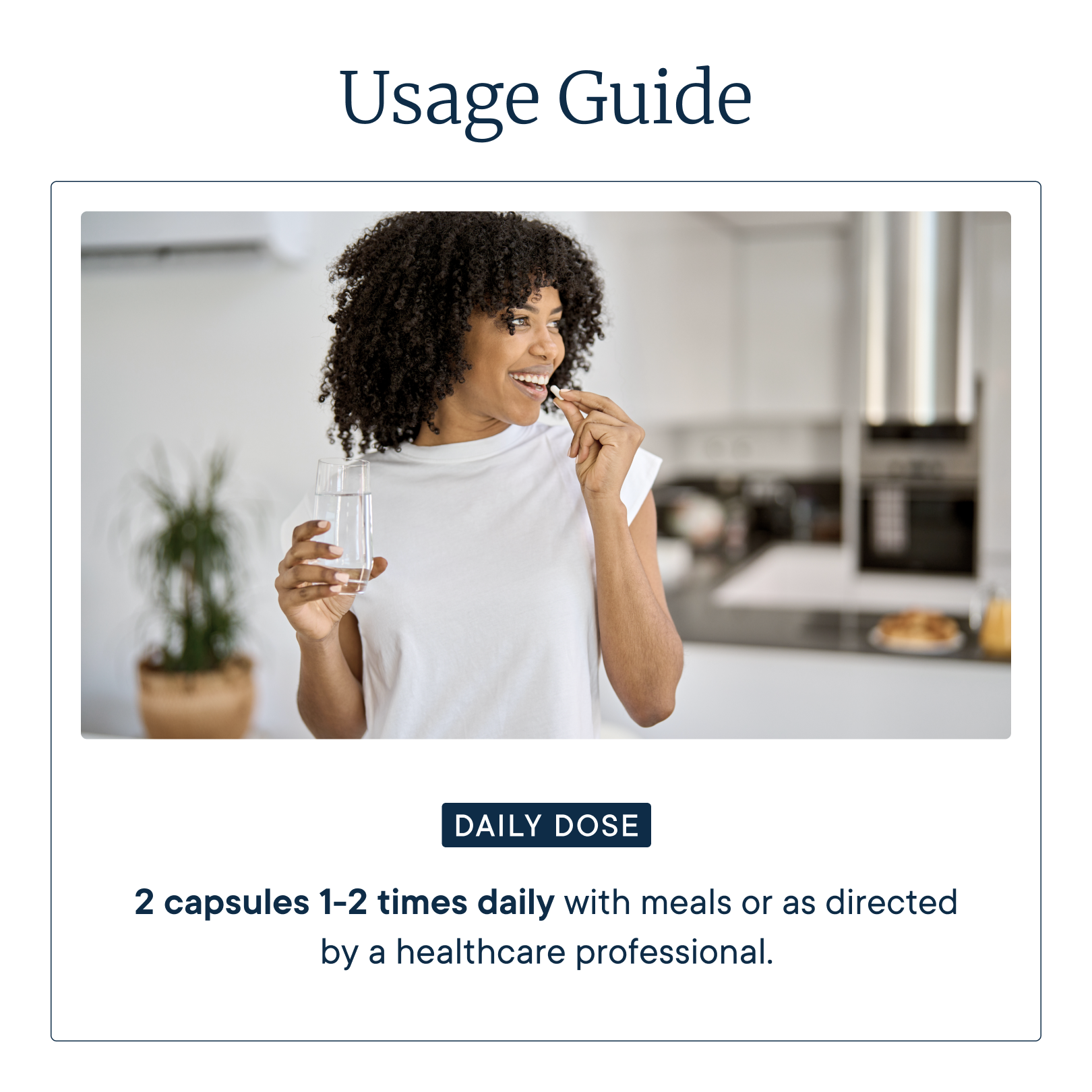 2 capsules 1-2 times daily with meals or as directed by a healthcare professional.